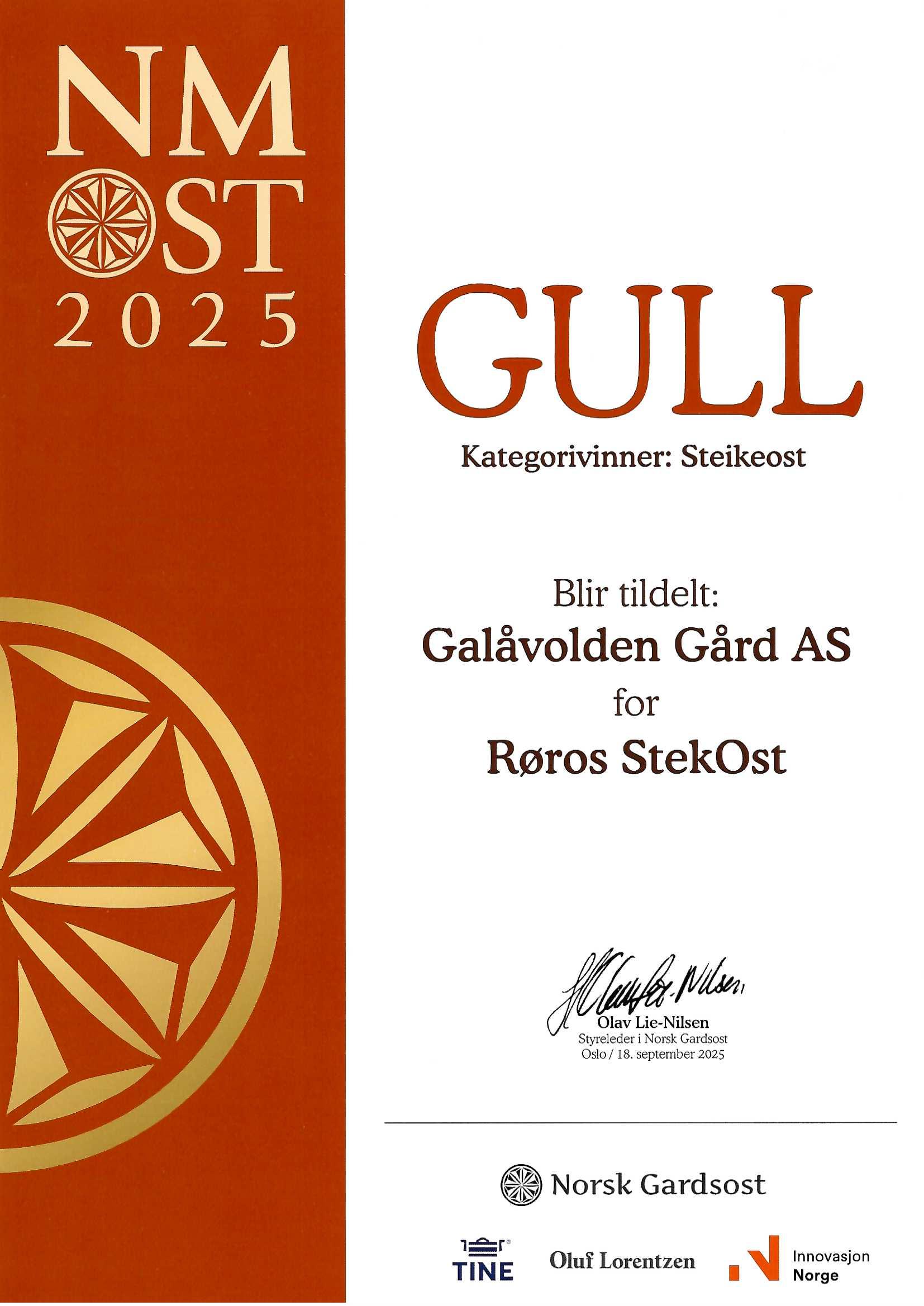 - NM Ost: Gullmedalje til Røros StekOst, o g kategorivinner som beste ost i klassen.