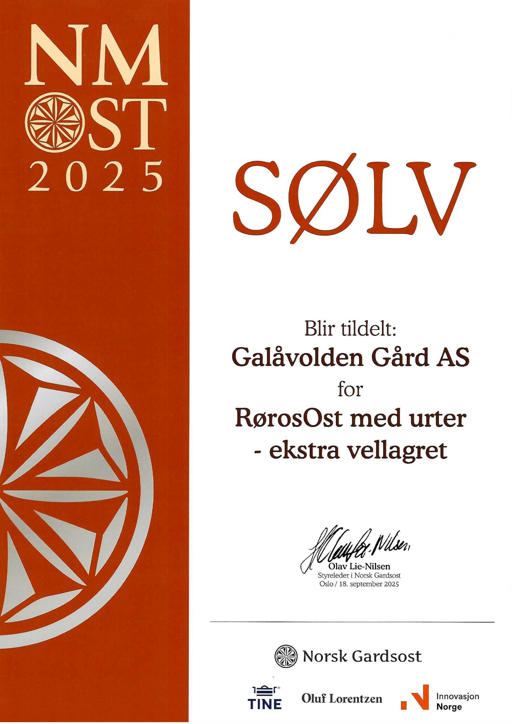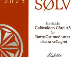 - Sølvmedalje til RørosOst med urter ekstra vellagret.