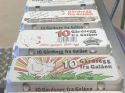Gårdsegg fra Galåen har kommet i mange ulike pakninger opp gjennom årene siden starten i 1976. Det startet med salg fra gården og til butikker på Røros. Senere ble det utvidet til butikker , hoteller og andre kunder i hele Fjellregionen. Da var Gårdsegg fra Galåen et naturlig merkenavn. Nå selges egga blant annet over hele Trøndelag og noen kunder i Osloområdet og da er det blitt mer naturlig med RørosEgg som merkenavn. Og dessuten har alle våre øvrige produkter Røros som merkenavn.